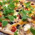 - Verdeel de paprika reepjes over de pizza, samen met de champignons, ui en tomaat.